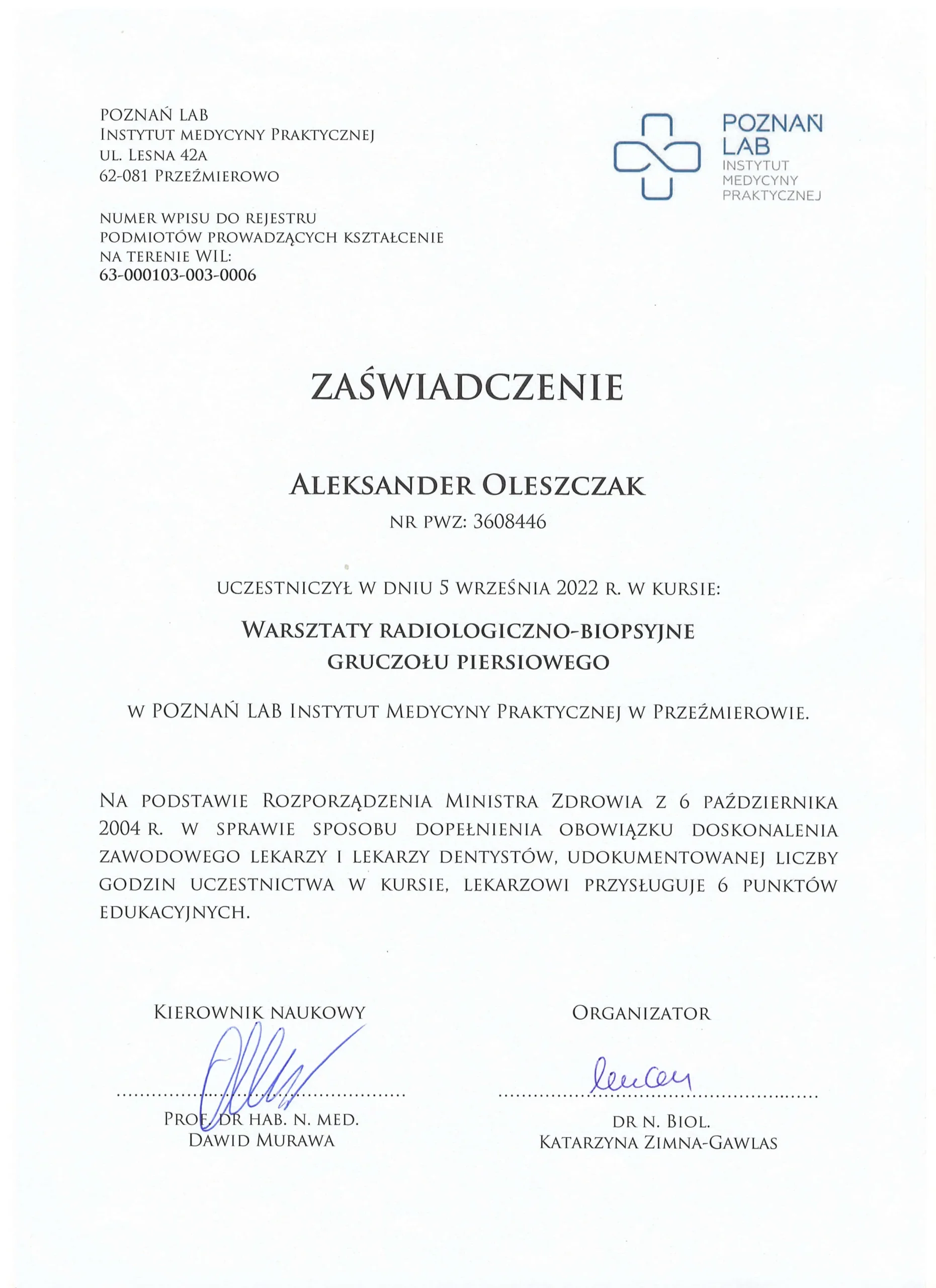 Zgłosiłam się do doktora Oleszczaka w celu konsultacji wyniku USG piersi i zmian, które zostały znalezione. Pan Doktor rzeczowo wyjaśnił mi dalszą ścieżkę postępowania i poprowadził w dalszej diagnostyce. Jestem bardzo zadowolona z wizyt, przede wszystkim czuję się naprawdę zaopiekowana i wiem, co dalej mnie czeka. Doktor jest konkretny i empatyczny. Bardzo polecam!