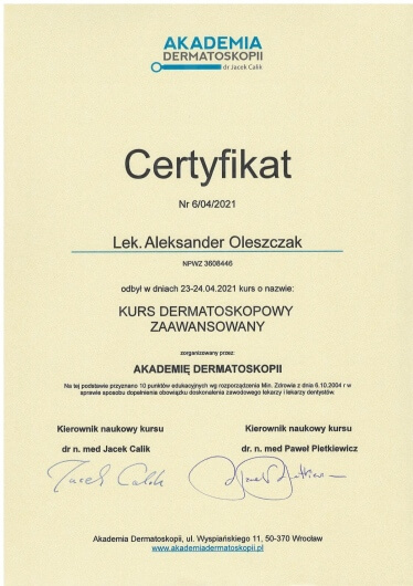 Stale rozwijam swoje umiejętności i aktualizuję wiedzę, uczestnicząc w kursach i szkoleniach specjalistycznych, m.in. we Francji, Włoszech, Belgii i Austrii. Dzięki temu mogę oferować pacjentom leczenie zgodne z najnowszymi wytycznymi i europejskimi standardami.